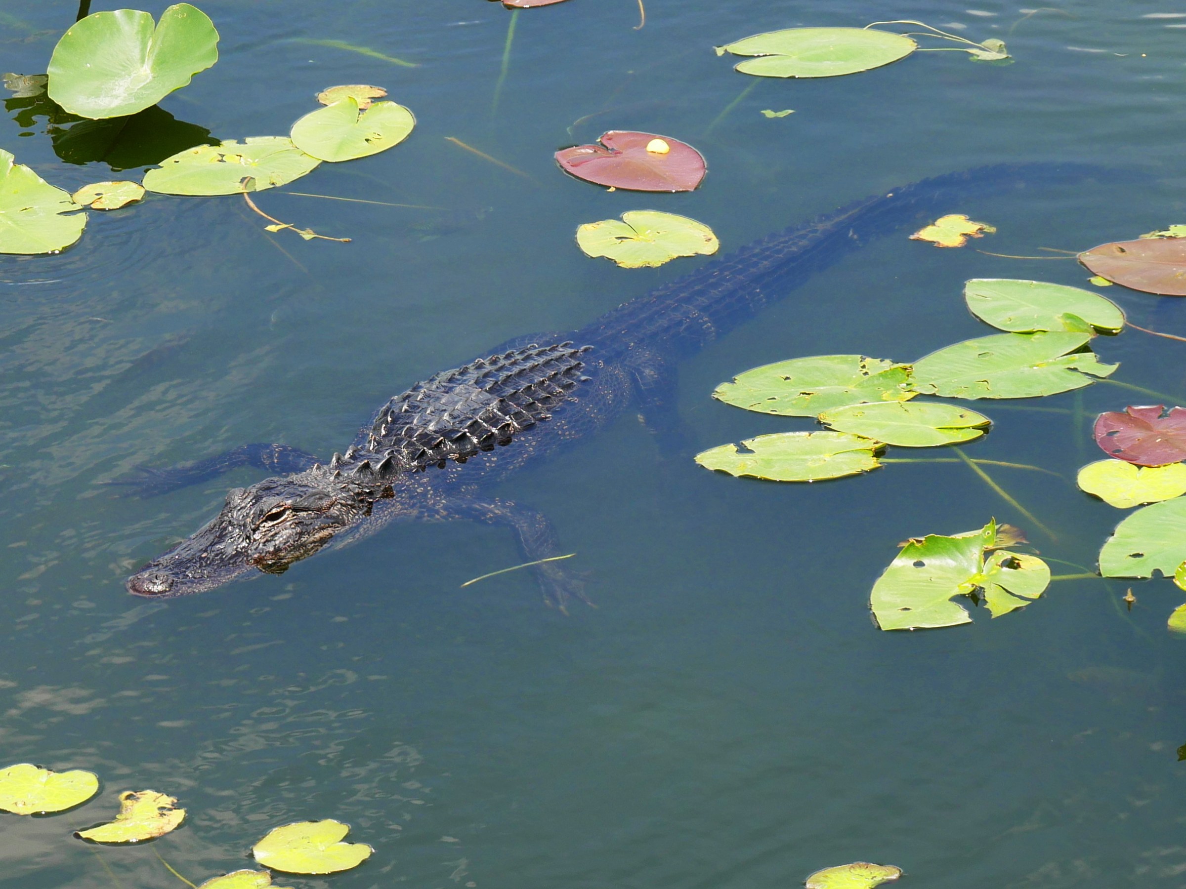 Übrigens: Eigentlich sind die Everglades kein Sumpf – sondern ein Fluss. Aber der fließt nur mit einer Geschwindigkeit von einem Meter pro Stunde. Und tief ist er auch nicht. Man könnte drin stehen. Will man aber nicht. Siehe oben.
